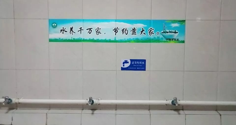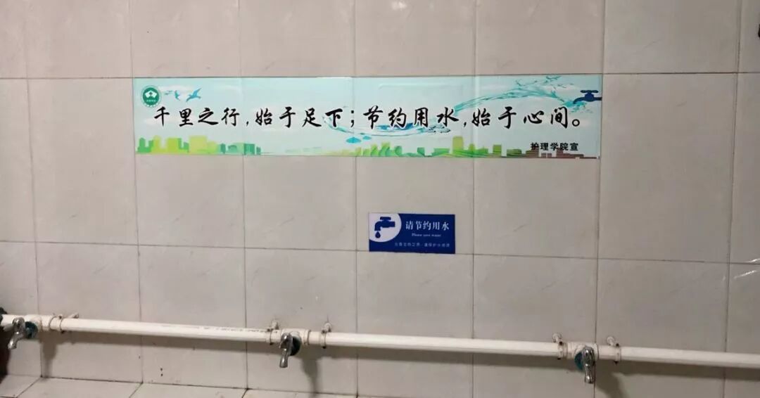 节约要渗透在生活的方方面面,因此护理学院检查部环保组将节约用水宣传标语贴在教学楼与公寓楼等处的洗手间,时刻提醒广大师生们节约用水,真正将节约落到实处。