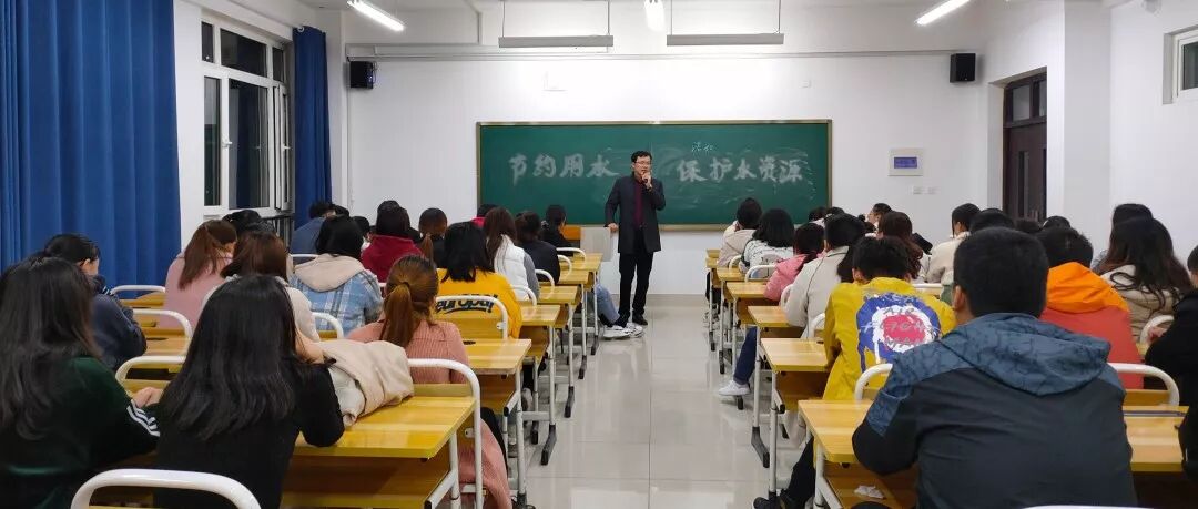 各班就世界水体的组成、各大洲水资源总量以及人均水资源的排序情况,让同学们明白水资源并不是取之无尽用之不竭的,进而让同学们认识到节约用水的重要性。辅导员就我国淡水资源缺乏,水资源约占人口四分之一的现状,讲解在日常生活中节约用水的方法,同时向同学们发出倡议,希望同学们爱水,惜水,节约用水,从现在做起,从个人做起。同学们积极回应,发表自己对节约用水的想法和见解,并表示会用实际行动去践行节约用水。